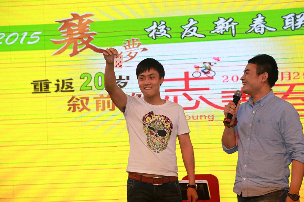 帅气的小师弟,用幸运之手为每一桌的7号校友,抽中了幸运台奖。