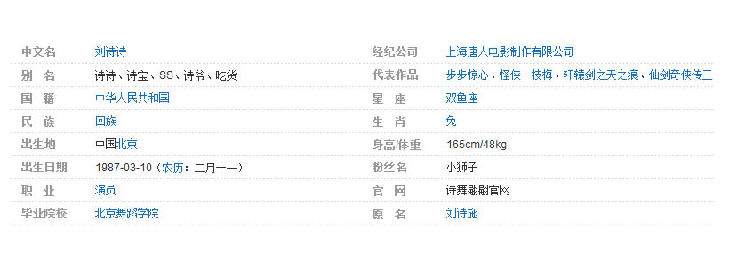 刘诗诗(1987年3月10日—),原名刘诗施,中国内地影视女演员,出生于北京,毕业于北京舞蹈学院芭蕾舞专业2006届本科班。